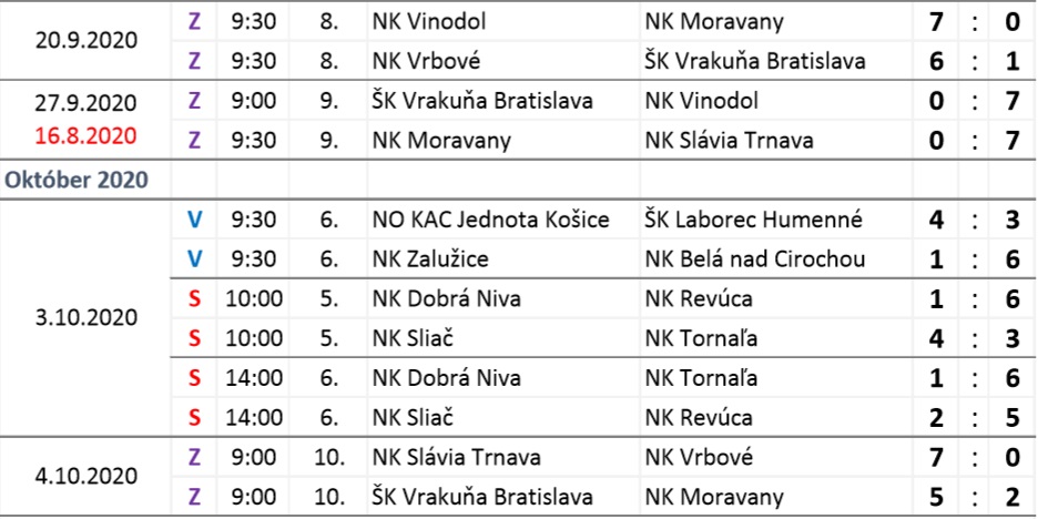 Rozpis a výsledky stretnutí základnej časti: