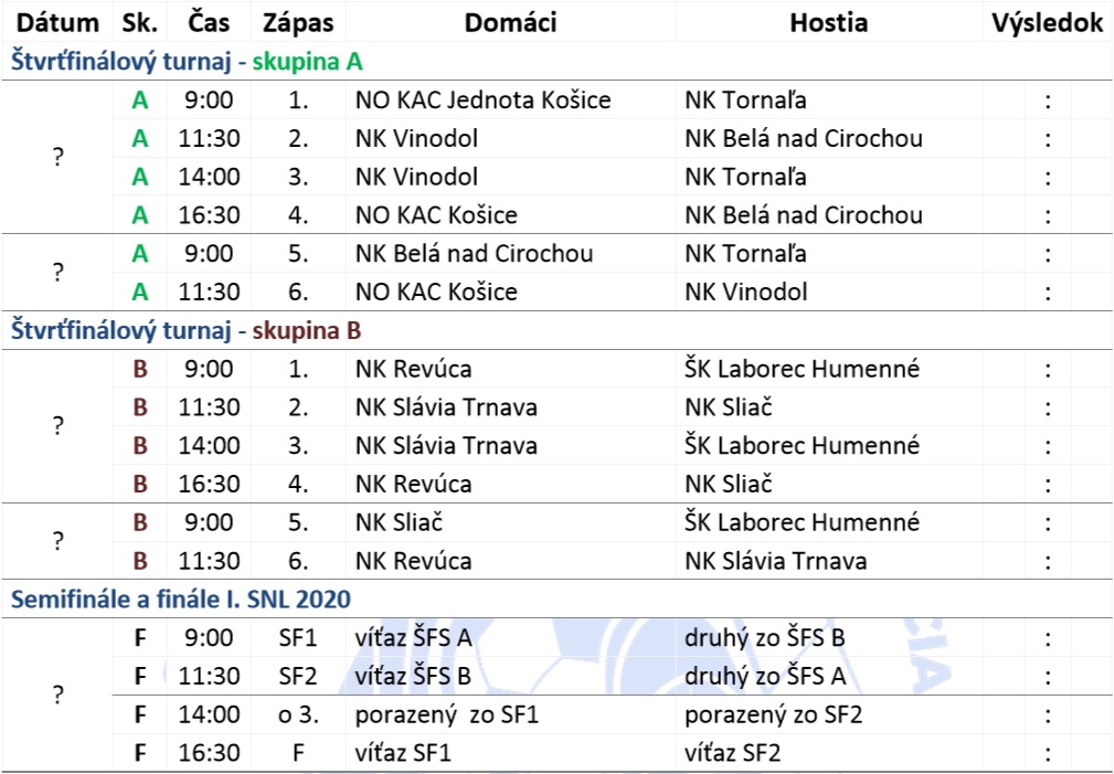 - najlepšie 4 družstvá si zahrajú v posledný hrací deň SNL 2020 o celkové umiestnenie